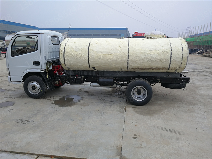溫泉熱水車哪里買_福田熱水供應車_澡堂溫泉熱水車價格,保溫熱水運輸車相比一般的灑水車在結構上多了一個保溫層,保溫層在制作上主要是在罐體外部先焊接一個支撐骨架,其厚度一般為100mm,然后再用保溫材料把骨架填充滿。在保溫材料的選擇上我們一般考慮導熱系數小,耐高溫,質量輕,吸聲性能好,絕緣性和化學穩定性好的硬質聚氨酷泡沫塑料或巖棉。然后需要對填充的保溫材料進行修正,***后在骨架上撞上蒙板,蒙板一般使用厚度為lmm的鋁板。