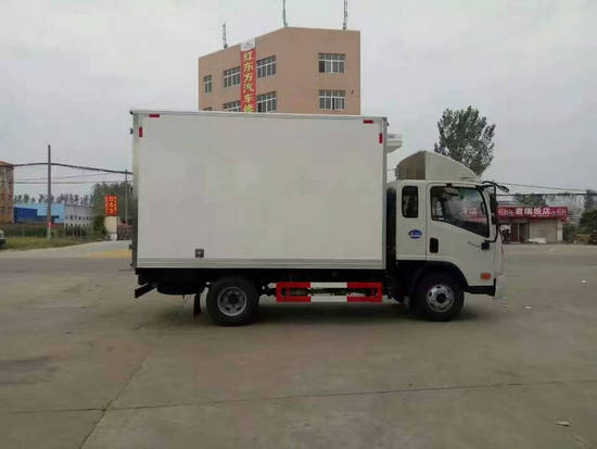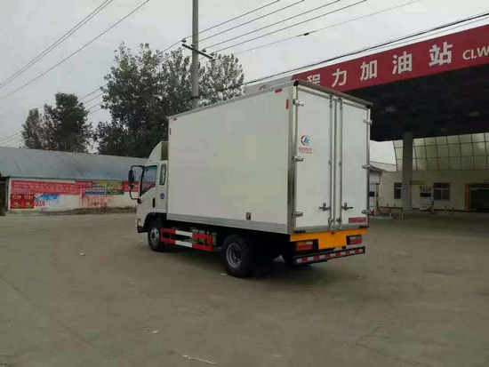 冷藏車廂體:采用國標A級聚氨酯保溫材料,厚度為8厘米,廂體內外采用玻璃鋼材質全包裹。不銹鋼鎖件。包角、包邊鋁合金型材。底盤采用高強度花紋鋁板定制。可選裝肉鉤導軌,和底部通風槽