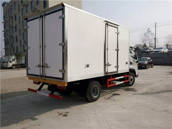 冷藏車廂體:采用國標A級聚氨酯保溫材料,厚度為8厘米,廂體內外采用玻璃鋼材質全包裹。不銹鋼鎖件。包角、包邊鋁合金型材。底盤采用高強度花紋鋁板定制。可選裝肉鉤導軌,和底部通風槽。