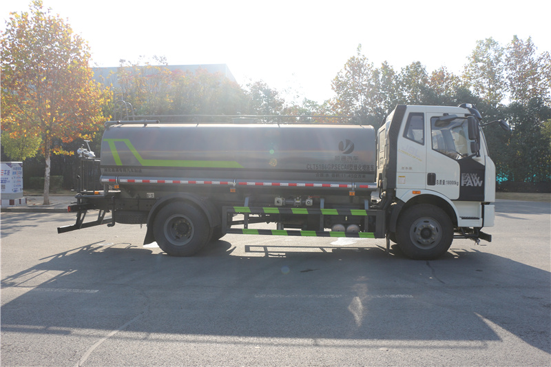 解放J6灑水車_解放15方灑水車_J6L大柴225灑水車_湖北盈通專用汽車有限公司,該車主要用于城鄉園林綠化噴灑,噴藥;主要裝置為水罐及噴灑裝置;罐體有效容積:11.45立方米,罐體外形尺寸(長×長軸×短軸)(mm):5200×2300×1410;ABS系統生產廠家:長春瑞立科密汽車電子有限公司,型號:CM4XL;側、后防護材料均為:Q235碳鋼,連接方式均為:螺栓連接,后部防護截面尺寸(mm):120×50,后部防護離地高度(mm):480。隨底盤選裝駕駛室。選裝噴霧裝置樣式。 |