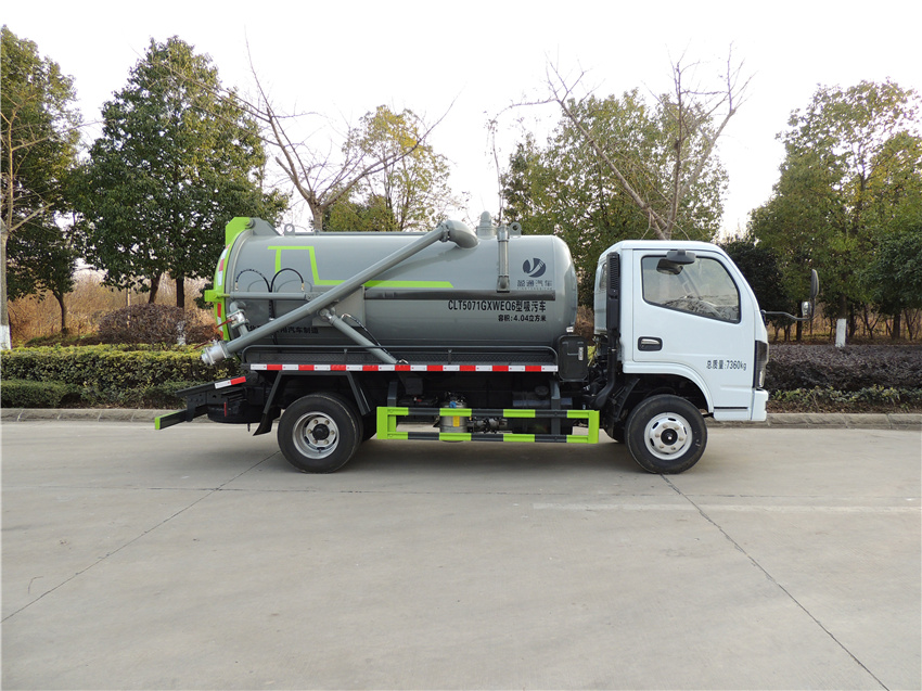 東風5方吸污車,多利卡5方吸污車,抽排運污車,糞便液態吸糞車,泥漿液態轉運車,隨底盤選裝燃油箱,電瓶,尿素罐,儲氣筒左右安裝位置.該車用于吸除水坑、下水道里污濁物;主要裝置有罐體及吸污裝置;罐體總容量:4.04立方米,罐體有效容積:3.85立方米,罐體外形尺寸(總長×直徑)(mm):3800×1300;ABS型號/廠家:ABS/ASR-12V-4S/4M/襄陽東風隆誠機械有限責任公司;側、后防護材料均為:Q235碳鋼,連接方式均為:螺栓連接,后部防護截面尺寸(mm):120×50,后部防護離地高度(mm):410.卸料方式為后卸式;隨底盤選裝駕駛室,選裝燃油箱,電瓶,尿素罐,儲氣筒左右安裝位置.選裝后部樣式。 |